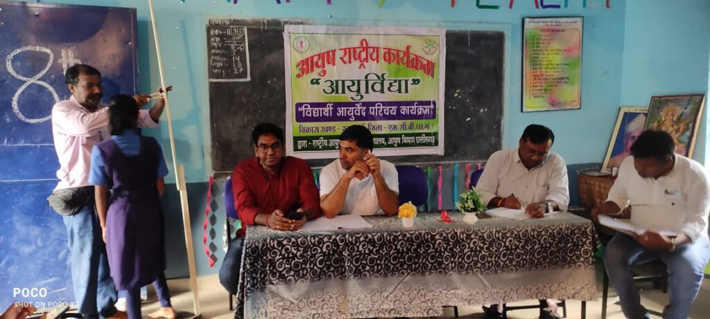 आयुर्विद्या कार्यक्रम अनुसार बच्चों का वजन,ऊंचाई, बी ०एम०आई० परीक्षण किया गया।उसके बाद आयुष मिशन पर प्रकाश डालते हुए डॉ० राजेश सिंह यादव ने भारतवर्ष की प्राचीनतम चिकित्सा पद्धति आयुर्वेद व योग विद्या पर प्रकाश डालते हुए कहा कि रोज प्राणायाम करके हम कई बीमारियों से खुद की रक्षा कर सकते हैं ।साथ ही हम कुछ संक्रामक बीमारियों में अपने रसोई घर से ही हल्दी,अजवाइन,जीरा,लौंग आदि कई मसलों के उपयोग से बचाव कर सकते हैं ।साथ ही आयुर्वेदानुसार खानपान करने पर निरोगी व सुंदर तन के मालिक बन अच्छे से पठन पाठन कर सकते हैं।आगे डॉ०यादव ने जड़ी बूटियों के महत्त्व पर प्रकाश डालते हुए अपने आस पास पाए जाने वाले औषधीय पेड़ पौधों की पहचान के साथ उनके गुणों और प्रयोग की जानकारी बच्चों संग साझा की।