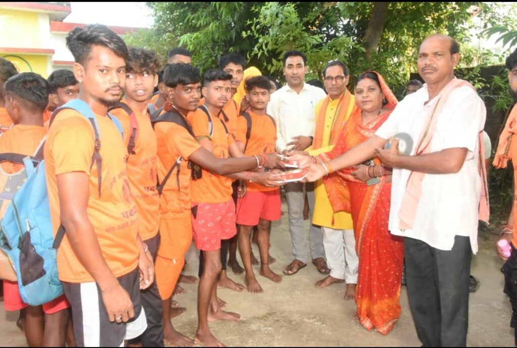 अर्जुनी।शारदीय नवरात्र के प्रारंभ में अर्जुनी व आसपास के के लगभग 73 श्रद्धालु का दाल प्रतिवर्ष के अनुसार इस वर्ष भी भगवा वस्त्र पहन कर मां बमलेश्वरी डोंगरगढ़ के दरबार दर्शन करने डोंगरगढ़ जाने के लिए पैदल खाली पांव रवाना हुए साथ ही श्रद्धालुओं में काफी उत्साह देखने को मिला। उक्त रवाना दल ने महामाया मंदिर व गायत्री मंदिर में पूजा पाठ अर्चना कर सेवा गीत, भजन,कीर्तन कर आसपास के क्षेत्र में सुख शांति एवं समृद्धि की कामना के साथ गांव की गली से दुर्गामाता, मावली माँ एवं महामाया माता रानी की पूजा अर्चना की।इस अवसर पर पूर्व सैनिक विष्णु प्रसाद साहू, पूर्व सरपंच चित्ररेखा साहू, शेखर वर्मा, गंगा प्रसाद यदु, सेवा निवृत शिक्षक, कैलाश कटारे एवं गांव के प्रमुख लोगों द्वारा हरी झंडी दिखाकर आगे रवाना किया गया। इस शुभ कार्य को भव्य रुप देने में पूर्व सैनिक विष्णु प्रसाद साहू का विशेष योगदान रहा है। उन्होंने 73 भक्तों के लिए भगवा वस्त्र प्रदान किये तथा रसद सामान का पैकेट बनवाकर सभी भक्तों को वितरण किया गया।इसी प्रकार पूरे गांव में माता की भक्ति का वातावरण बना रहा